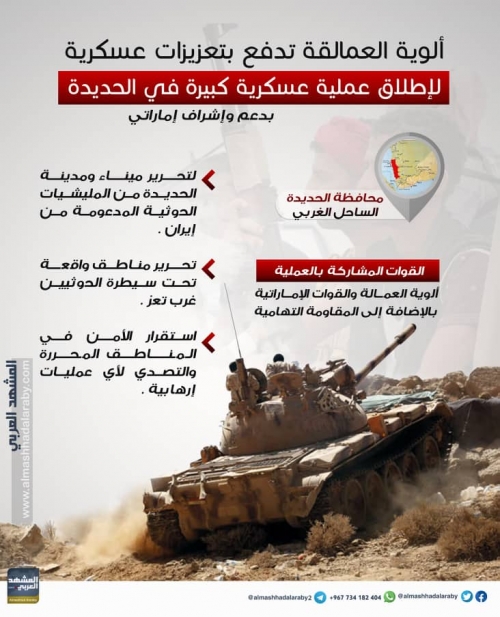 بدعم إماراتي .. العمالقة تدفع بتعزيزات عسكرية كبيرة الى الحديدة .. انفوجرافيك
