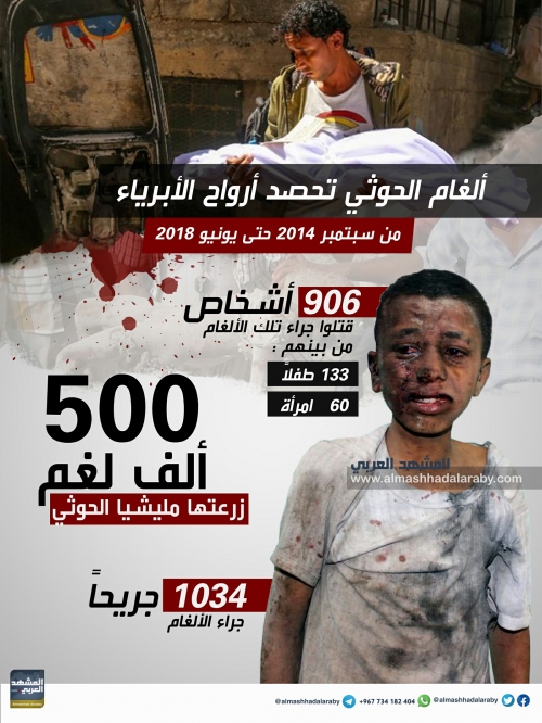 بالأرقام.. ألغام الحوثي تحصد أرواح الأبرياء في اليمن.. انفوجرافيك