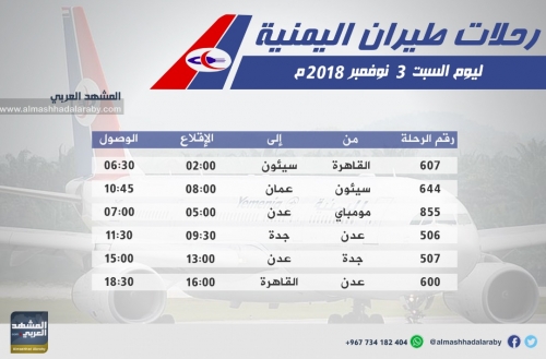 مواعيد رحلات طيران اليمنية ليوم غد السبت 3 نوفمبر 2018
