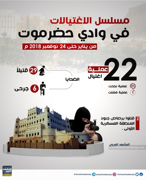 منذ يناير وحتى نوفمبر 2018.. 22 عملية اغتيال في حضرموت