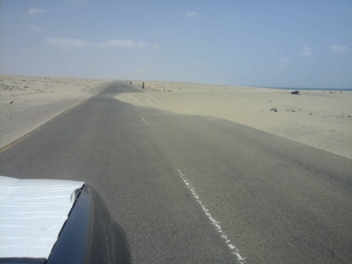 اكتسحت الرمال الساحلية اليوم الأربعاء أجزاء من الطريق الساحلي الرابط بين المناطق الساحلية لمحافظتي عدن ولحج، حيث تظهر الصور الرمال وهي متكدسة على مساحة كبيرة داخل الخط الإسفلتي والذي يقع بالقرب من منطقة مشهور وهي منطقة تابعة لمديرية البريقة وتقع في الجهة الغربية من المدينة وتبعد عنها حوالي ٤٠ كيلو متر تقريباً.