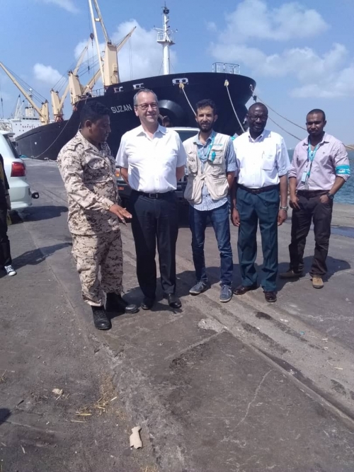 قام المدير الإقليمي لمنظمة اليونسيف " السيد جيرت كابيلاري" والوفد المرافق له اليوم الأربعاء بزيارة ميناء المعلا بالعاصمة عدن، وذلك للاطلاع والإشراف على وصول المواد الإغاثية المقدمة من المنظمات الدولية عبر الميناء .