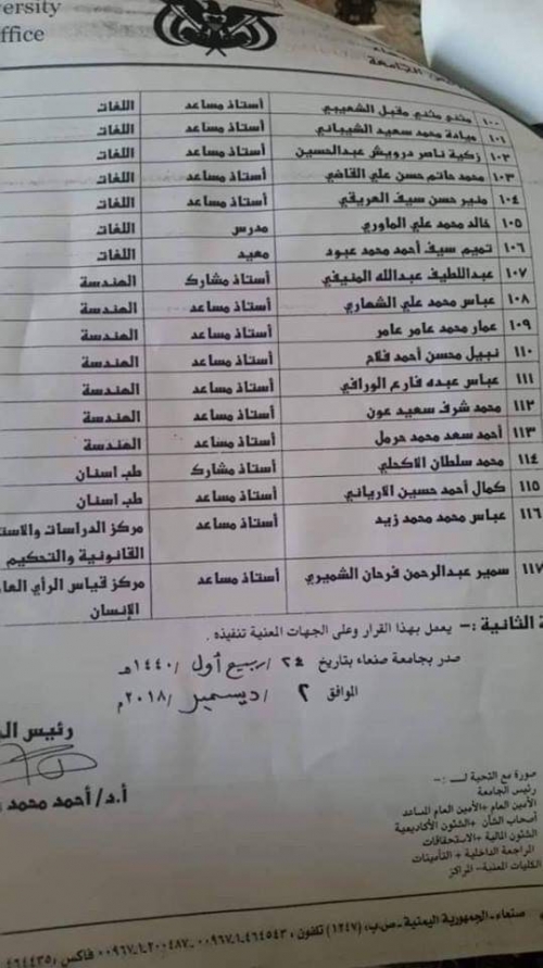 وقال في تغريدة عبر "تويتر"، رصدها "المشهد العربي": "بينما تتحاور الحكومة اليمنية مع مليشيات الحوثي من أجل انقاذ الاف اليمنيين القابعين في سجونها..إلا أن المليشيات مستمرة في اختطاف المزيد من اليمنيين وفي نفس الوقت تعمل على حوثنة الوظيفة العامة للدولة آخرها فصل 117 أكاديميا من جامعة صنعاء واستبدالهم بمواليين لها".
