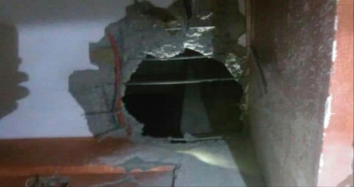 تداول نشطاء على وسائل التواصل الاجتماعي أول صورة للأضرار التي أحدثها الانفجار في سطح محلات تجارية تتوسط بريد الضالع ومستشفى النصر.