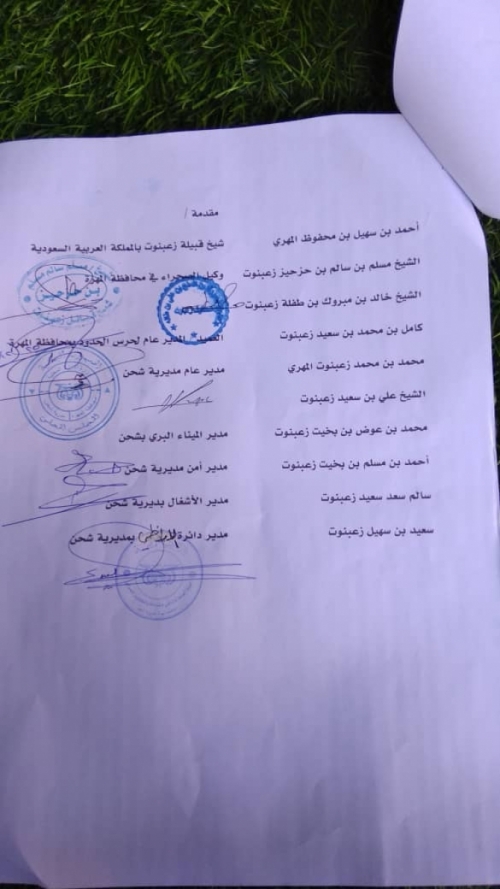 وجددت قبيلة زعبنوت والسلطة المحلية بمديرية شحن في بيانها موقفها الثابت الداعم للتحالف العربي بقيادة المملكة العربية السعودية الشقيقة والحكومة الشرعية ممثلة بفخامة الرئيس عبدربه منصور هادي رئيس الجمهورية ، ونبذها لمظاهر السلبية الخارجة عن السلم الاجتماعي والنظام والقانون التي تقود إلى الفوضى وزعزعة الأمن والاستقرار.