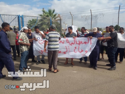 نظم عمال وموظفو اللجنة العمالية بشركة مصافي عدن، وقفة احتجاجية صباح اليوم الإثنين للمطالبة بعدد من المطالب الحقوقية.