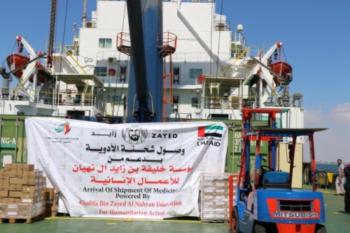 الإمارات تستهل عام التسامح بشحنة أدوية إلى ميناء عدن صور