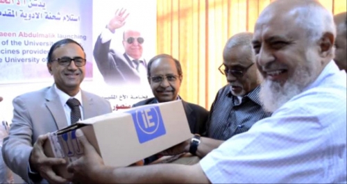 جامعة عدن تتسلم شحنة من الأدوية مقدمة من إيطاليا
