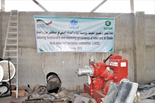 سلمت منظمة اليونيسيف، اليوم الإثنين، المعدات إلى شركة المياه والصرف الصحي المحلية في عدن اليمن.