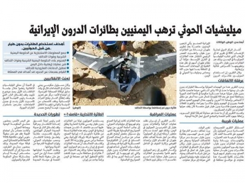 وقالت صحيفة "الوطن"، في تقرير حمل عنوان "ميليشيات الحوثي ترهب اليمنيين بطائرات الدرون الإيرانية" إن المركز الدولي لمحاربة الإرهاب IDC أشار في تقرير له إلى الإرهاب الذي تنشره الميليشيا الحوثية في اليمن، وذلك عبر الطائرات بدون طيار "الدرون"، وتطويعها لأغراض قتالية وإرهابية.