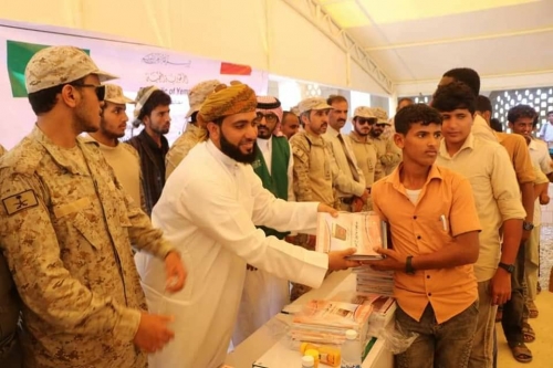 دشّن مدير عام مديرية حصوين بمحافظة المهرة ياسر الأسد، والمدير التنفيذي للبرنامج السعودي للتنمية والإعمار باليمن "فرع المهرة" عبدالهادي القحطاني - اليوم الأربعاء - عملية توزيع المقاعد والكتب المدرسية لمدارس المديرية التي طُبعت على نفقة المملكة العربية السعودية وفق المنهج المدرسي اليمني.