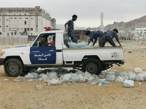 نفذت الأجهزة الأمنية بساحل حضرموت عملية إتلاف كميات من كراتين المياه منتهية الصلاحية بمدينة المكلا بعد ضبطها من الفرق المعنية.