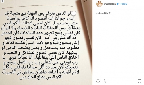وأضافت مي، من خلال صورة نشرتها على حسابها عبر موقع إنستجرام، أنها تتمنى لو تسجل لقطات الكواليس كل ما يتعرض له الفنان، وليس مجرد لحظات نادرة للضحك.