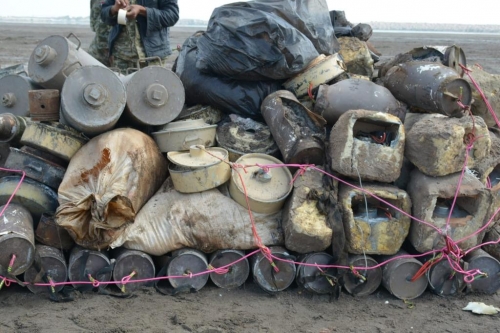 ونشر أنعم، صورة عبر موقع التواصل الاجتماعي، تويتر، تابعها المشهد العربي، لأكوام من الألغام التي يستخدمها الحوثيين ضد أبناء اليمن.