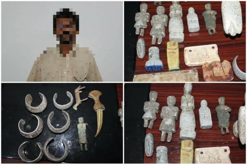 ألقت الأجهزة الأمنية في نقطة دفيقة مدخل الشحر الشرقي، صباح اليوم الخميس، القبض على مواطن وبحوزته مجموعة من القطع الأثرية القديمة، وذلك أثناء محاولته إخفائها وتهريبها.
