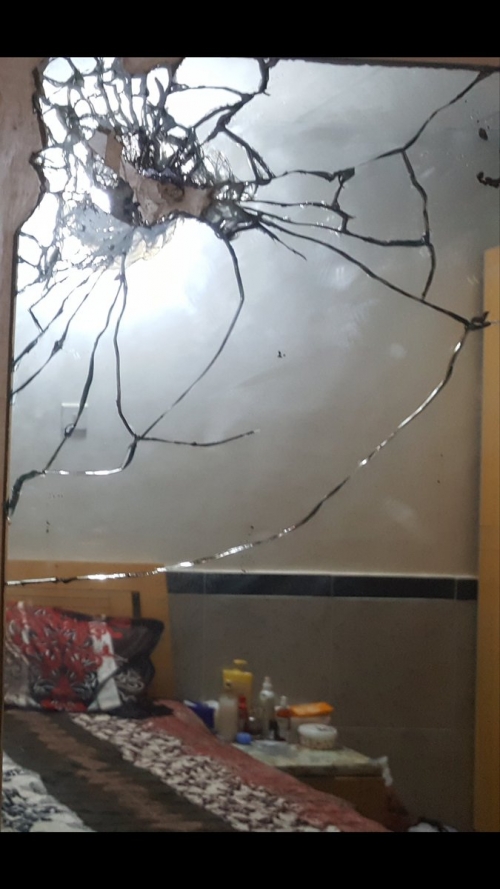 نشر السياسي الجنوبي، المحامي يحيى غالب، صورة لمرآة غرفة نومه وهي محطمة من رصاص الأمن المركزي الشمالي عام ٢٠١٢.