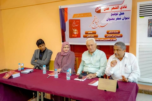نظم نادي الشعر بعدن حفل توقيع ديوان "سلامًا أيها الفجر" للشاعرة العدنية عائشة المحرابي، مساء اليوم الاثنين، في المكتبة الوطنية بكريتر.