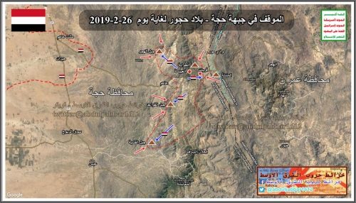 كما نشر الحساب أيضا، الموقف والسيطرة على الأرض في بلاد حجور بمحافظة حجة لغاية يوم 26-2-2019.