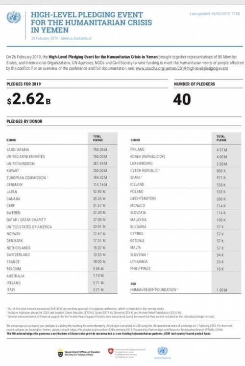 وكتب بحاح، في تغريدة له عبر موقع التواصل الاجتماعي، تويتر، تابعها المشهد العربي: "عبارات الوفاء والثناء لكل الدول المانحة لمساندتها بلادنا وهي تمر بظروف صعبة".