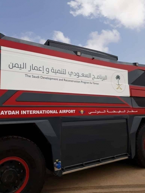 قدم البرنامج السعودي لتنمية وإعمار اليمن عربة إطفاء حديثة لدعم مطار الغيضة الدولي في محافظة المهرة.