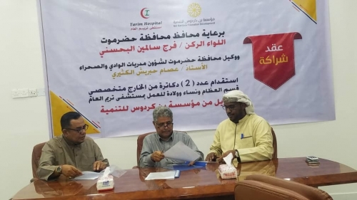 وجاء توقيع الشراكة برعاية محافظ حضرموت اللواء فرج سالمين البحسني، ووكيل محافظة حضرموت لشؤون مديريات الوادي والصحراء عصام حبريش الكثيري، وبحضور مدير عام مديرية تريم المستشار القانوني خالد عوض هويدي.