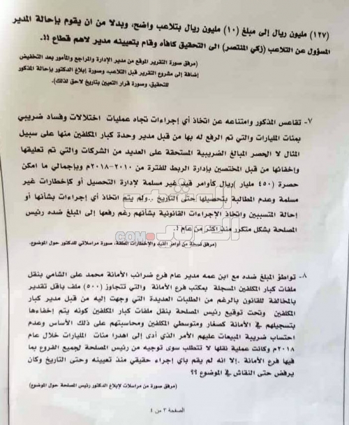 وأضافت أن شكوى المحامي المقرب من محمد علي الحوثي، رئيس ما يسمى اللجنة الثورية، تضمنت معلومات عن توريد مبالغ مالية بطريقة مخالفة لصندوق المصلحة، وتخفيض ضرائب لكبار المكلفين، وإخفاء أكثر من 500 ملف لكبار المكلفين بالتعاون مع ابن عمه مدير مكتب ضرائب صنعاء، محمد علي الشامي .