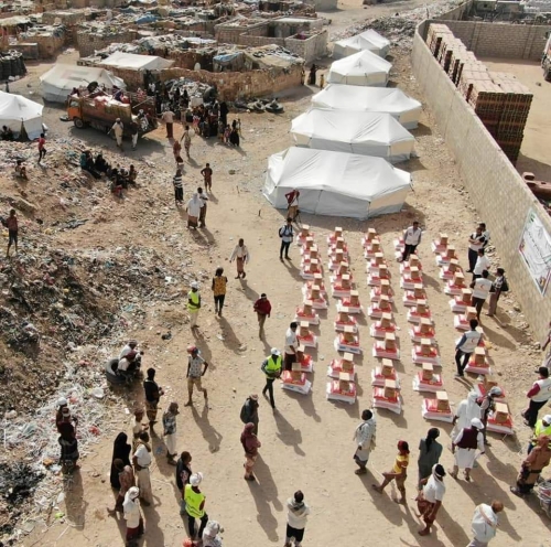 الهلال الإماراتي يوزع مساعدات عاجلة لمخيم النازحين بشبوة (صور)