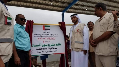 قام الهلال الأحمر الإماراتي اليوم الأحد، بتدشين مشروع سوق الأسماك في الخوخة جنوب محافظة الحديدة.