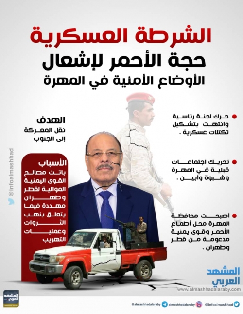 شكّل علي محسن الأحمر ، تكتلات عسكرية تحت لواء "الشرعية" في المهرة، لاستئناف جرائم التهريب والمخدرات والإرهاب التي كان يستفيد منها قبل تحرير المحافظة.