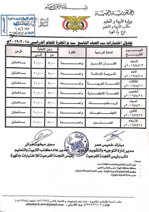 لجنة الاختبارات في المهرة تقر جدول اختبارات الفصل التاسع (صور)