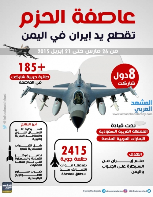 في الذكرى الرابعة لها.. عاصفة الحزم تقطع يد إيران في اليمن (انفوجرافيك)