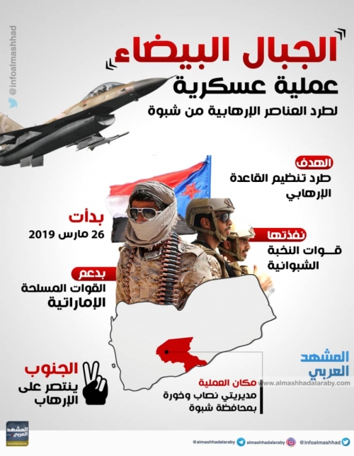 الجبال البيضاء.. عملية عسكرية لاقتلاع جذور الإرهاب في شبوة (انفوجرافيك)
