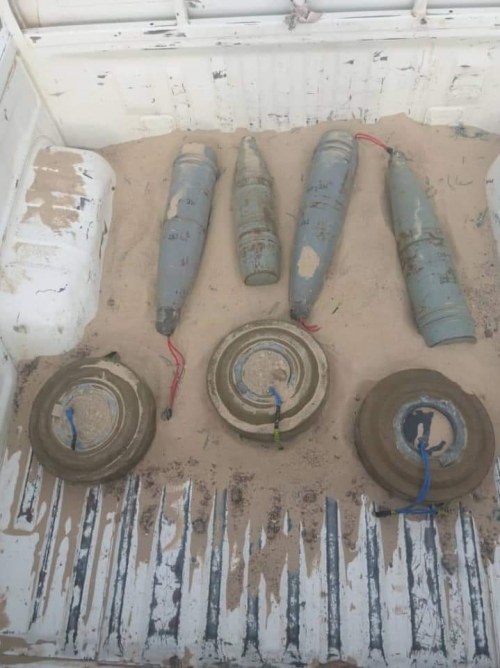 كما عثرت قوات النخبة الشبوانية على كميات من الأسلحة والمعدات تركتها العناصر الإرهابية بينها راجمة صواريخ BM21، وأسلحة رشاشة مضادة للطيران في مديرية مرخه السفلى، وكميات كبيرة من الألغام والمتفجرات المبتكرة في مديرية نصاب.