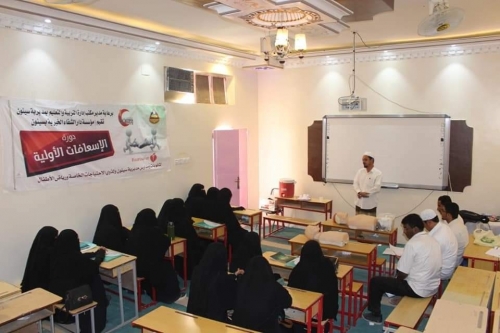 نظمت مؤسسة دار الشفاء الخيرية دورتين لـ30 معلماً ومعلمة في مجال الصحة المدرسية برياض الأطفال والمدارس والثانويات في منطفتي الغرفة وتريس بمديرية سيئون.