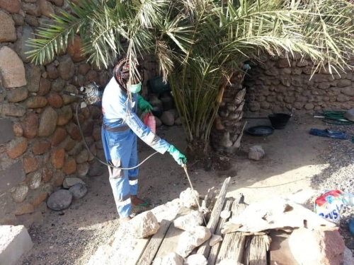 وتضمن برنامج مكافحة الحشرات والآفات، قيام الفرق الراجلة، بحملة لرش المنازل، وتوعية الأهالي بأهمية الرش والفائدة المرجوة من مكافحة البعوض والحشرات.