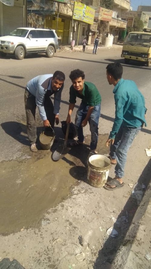 مبادرة لردم الحفريات بالشارع العام بمدينة الحبيلين في لحج