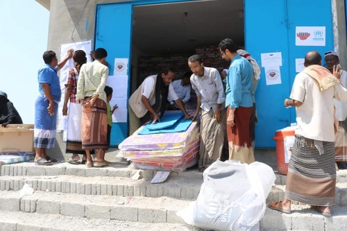 توزيع مساعدات إيوائية على النازحين بمدينة المكلا