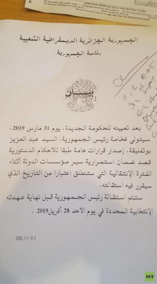 وذكرت الرئاسة الجزائرية في بيان أنه وبعد تعيينه للحكومة الجديدة يوم 31 مارس 2019، سيصدر الرئيس بوتفليقة قرارات هامة طبقا لأحكام الدستور.