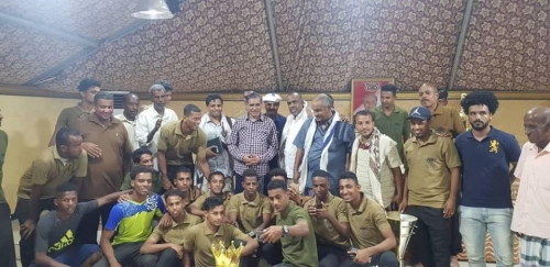 وكتب البحسني، في تغريدة له عبر موقع التواصل الاجتماعي، تويتر، تابعها المشهد العربي: "لقطات مصورة من اللقاء بإدارة ولاعبي فريق نادي التضامن لكرة القدم بطل النسخة السادسة لبطولة كأس حضرموت لكرة القدم".