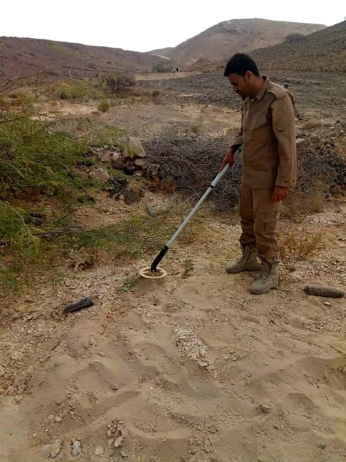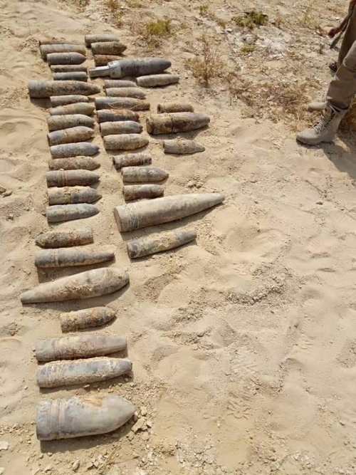 العثور على قذائف متفجرة شديدة الخطورة شمال شرق المكلا (صور)