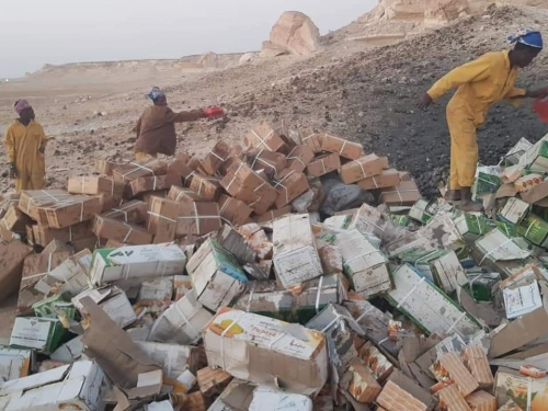 إتلاف بضائع ومواد غذائية منتهية الصلاحية بمنفذ شحن بالمهرة
