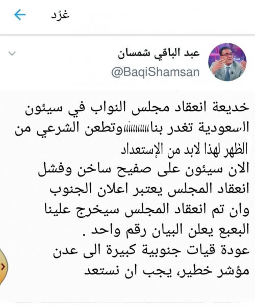 علق الناشط السياسي، المحامي يحيى غالب، على تغريدة دكتور بالعلوم السياسية موالي للشرعية يهاجم فيها التحالف العربي.