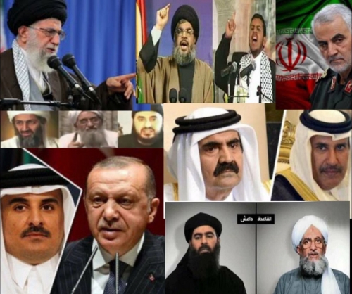 نشر المحلل السياسي السعودي فهد ديباجي، اليوم، صورة، لتنظيم الحمدين وأمير دويلة قطر تميم بن حمد، والرئيس التركي رجب طيب أردوغان، والأمين العام لحزب الله حسن نصرالله، وزعيم المليشيات الحوثية عبدالملك الحوثي، بصحبة عدد من القيادات لدى التنظيمات الإرهابية.