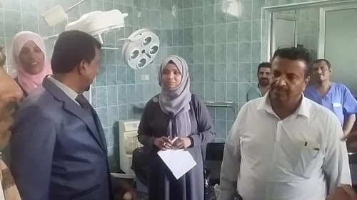 واطلع خلال زيارته على قسم علاج الكوليرا وسير علاج الحالات مشيداً بالجهود التي تبذل لعلاج الحالات،رغم شحة الإمكانيات مناشدا المنظمات الدولية تقديم الدعم للمستشفى الذي يوفر الخدمة للعديد من المرضى من عدة مديريات،مشيراً إلى أن قيادة المحافظة ممثلة باللواء أحمد عبدالله التركي تبذل جهود كبيرة في مواجهة وباء الكوليرا والقطاع الصحي بشكل عام.