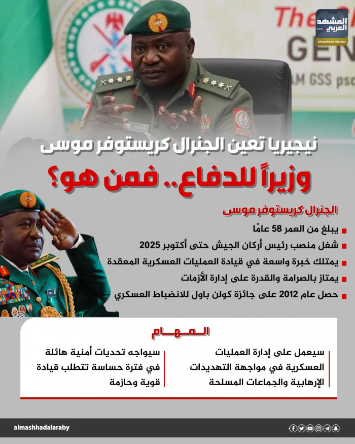 نيجيريا تعيّن الجنرال كريستوفر موسى وزيرًا للدفاع.. فمن هو؟ (إنفوجراف)