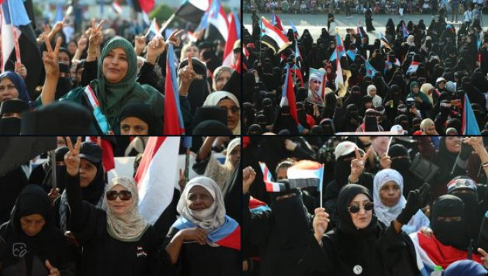 شهدت ساحة العروض بالعاصمة عدن، حشودا نسوية تأييدًا للقوات الحكومية الجنوبية، وللمطالبة بإعلان دولة الجنوب العربي كاملة السيادة.