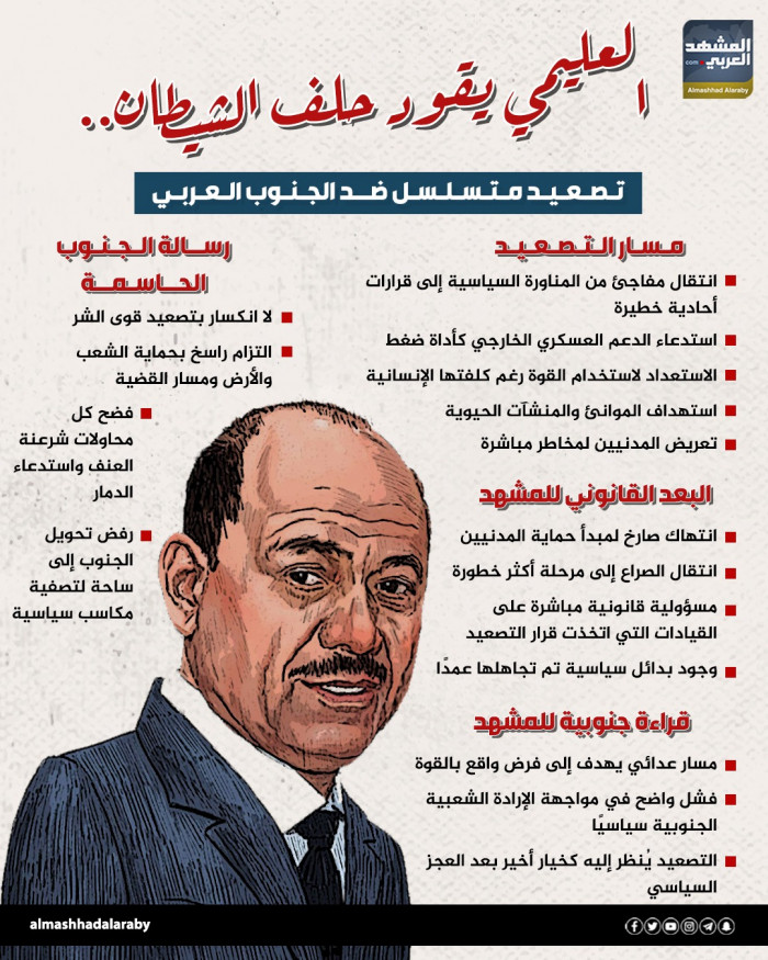 العليمي يقود حلف الشيطان.. تصعيد متسلسل ضد الجنوب العربي (إنفوجراف)
