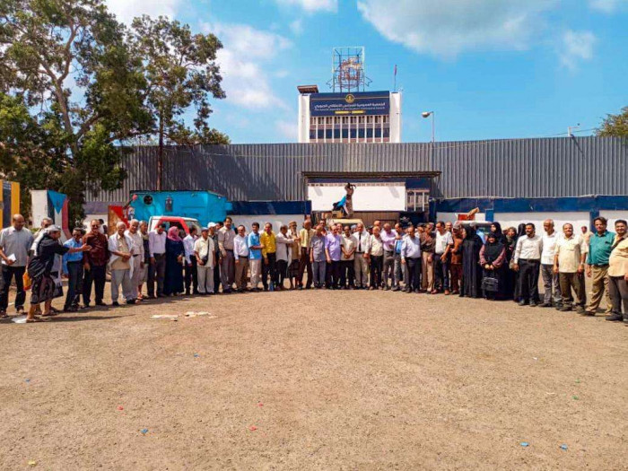 نظم أعضاء وموظفو الجمعية العمومية للمجلس الانتقالي الجنوبي، اليوم الأحد، وقفة احتجاجية أمام مقر الجمعية في مديرية التواهي بالعاصمة عدن.