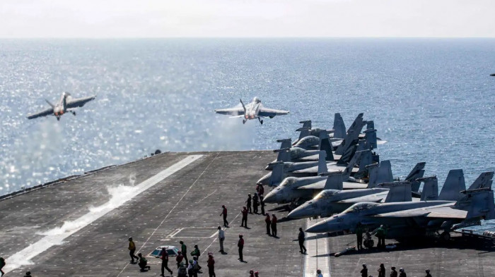 أعلنت القيادة المركزية الأمريكية اليوم الأربعاء، أن 5 آلاف جندي على حاملة الطائرات أبراهام لينكولن في بحر العرب، ينفّذون مهمة حصار موانئ إيران.