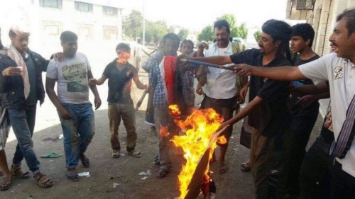 وأوضح: "الصورة من ارشيف المصور العالمي نبيل القعيطي ويظهر فيها الوكيل مدحت وهو يحرق علم اليمن وصور الرئيس هادي في 2012م".